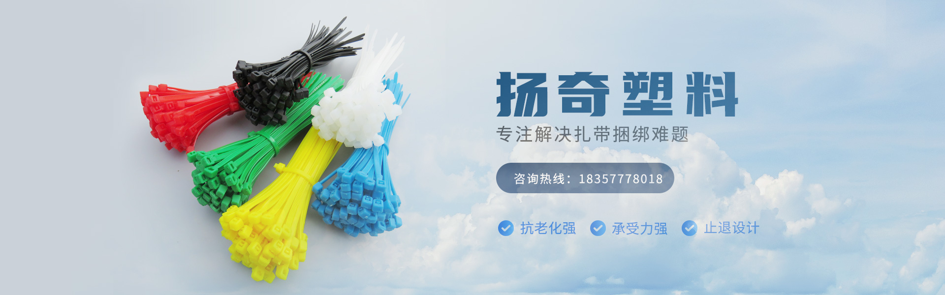 樂(lè)清市揚(yáng)奇塑料有限公司專(zhuān)業(yè)生產(chǎn)和銷(xiāo)售尼龍?jiān)鷰?cable ties)、鋼釘線(xiàn)卡、不銹鋼扎帶、標(biāo)牌扎帶、瓷磚找平器、膨脹管、異型管等電線(xiàn)電纜配件,獲ISO9001質(zhì)量體系認(rèn)證,產(chǎn)品廣泛應(yīng)用于電子、機(jī)械、汽車(chē)、摩托、自行車(chē)等行業(yè)的捆綁之用,使用方便,價(jià)格合理。成為眾多企業(yè)、商家采購(gòu)產(chǎn)品,更是大量進(jìn)入歐美等發(fā)達(dá)國(guó)家的超市。聯(lián)系電話(huà):18357778018